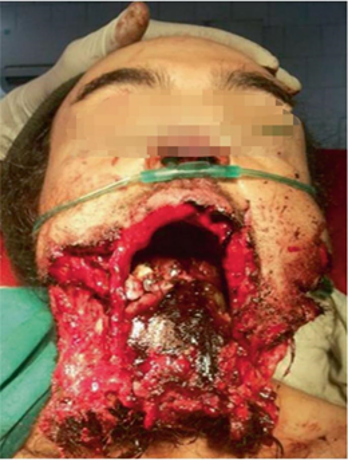 Jag släpar med mig Sandstedt och söker skyddDu har lyckats hittat en skyddad plats i en grop bakom en stor klippa. Du har också larmat. Artillerielden fortsätter och när den senare avtar hör du skottlossning. Du kan nu fokusera på Sandstedts skador. Han är vaken och du noterar en sannolik splitterskada i ansiktet där stora delar av underkäken och hakan saknas. Du ser pulserande blödningar i sårområdet. |